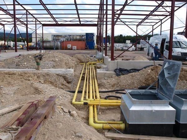 Die Rohrleitungen werden nach DIN 30672 werksseitig isoliert gegen Korrosion geschützt ausgeführt. Sämtliche Rohrleitungen werden mit stetigem Gefälle zum Behälter verlegt.